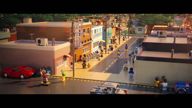 As is the case with the LEGOŽ shorts and films that have come before it, Piece by Piece provides neverending opportunities for primaries to pop, and they do so ceaselessly. Yellows, blues, and reds leap off the screen whether part of a character's wardrobe or the environment. The animated lines that denote characters' eyes and mouths as they speak, squint, or blink are universally clean and sharp. Image depth is solid, aided by very satisfying blacks which are deep and inky without crushing. Shading on the LEGOŽ avatars of the people in Williams' story and in the world they populate is done excellently, without banding. Even though the bulk of the people and objects on display in Piece by Piece are smooth, as is the case with most LEGOŽ pieces, there are moments when texture is added to walls on building exteriors, clothing, hair, floors (such as in Chad's attic studio, and various props. Pieces can even sometimes display nicks and wear along their edges simulating the notion that they have been assembled and disassembled numerous times. High gloss surfaces like bottles and elevator doors are suitably and realistically reflective. It's a very strong 1080p transfer.