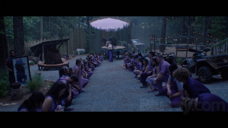 The AVC encoded image (2.39:1 aspect ratio) presentation supplies a decently textured viewing experience for the film, which delivers skin particulars and fibrous costuming. Interiors around Trout Plus are deep, and forest exteriors maintain dimension. Colors are secure, exploring defined greenery and varied clothing choices, including cult purples and blues. Skin tones are natural. Delineation occasionally gets close to solidification in the final act of the movie, dealing with evening activity and limited lighting. Compression issues are periodic, as mild banding is detected.