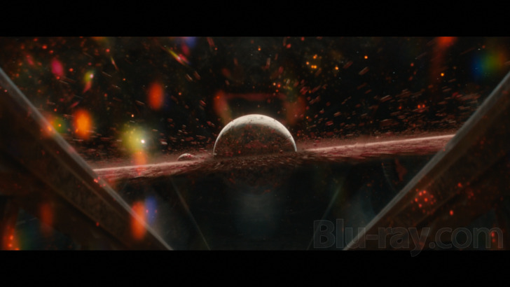 Predator: Badlands features a DTS-HD Master Audio 7.1 track (as tends to be the case with Disney, their 4K UHD disc has an Atmos track). This is another case where I wouldn't stridently argue that those who only get this standalone 1080 release of the film are going to miss anything significant on the 7.1 version when compared to the Atmos track, though there are a couple of examples in my review of the 4K release where the added height effects in the Atmos version are noticeable. One way or the other, the "traditional" side and rear channels on this nicely immersive 7.1 track are consistently engaged throughout and ambient environmental effects on Genna are especially impressive. Dialogue is rendered cleanly and clearly (with forced subtitles for some alien talk). Otherwise, optional subtitles in several languages are available.