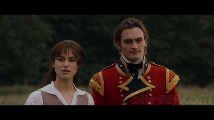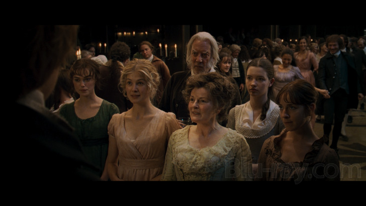 Originally shot on film, this 4K upscale with Dolby Vision looks positively sumptuous on 4K UHD. While the previous Blu-ray was warmly received upon its initial review in 2010, this new 2160p presentation bests it in every regard, appearing wonderfully filmic and looking terrific in motion. Colors more deeply and richly saturated, whether they be the lush greens of the natural world, the rainbow of colors of women's dresses, and the vibrant, but not egregiously so, red of Mr. Wickham's military uniform. Whites dazzle, and blacks are typically deep and inky. Shadows, in all of their various gradations, allow for investigation and reveal their contents to varyingly appropriate degrees. Due to the numerous candlelit and sunlit scenes, there is a honeyed warmth to virtually every scene. Fine detail is consistently high, with lacey details of dresses, embroidery, and other clothing elements possessing a realistic tactile quality. Age and wear around the interior of the Bennet home and buildings are evident, helping to provide a deeper understanding of their economic situation. Environmentally, the same holds true, with exterior brickwork, mortar, woods, and wood grain all being discernible. Fine film grain is present and resolves naturally and without significant issue, though some very mild noise is visible on rare occasion, but one must be actively seeking it out to spot it. Skin tones are universally healthy and realistic. Depth and dimensionality are quite pleasing. Fans should be thrilled.