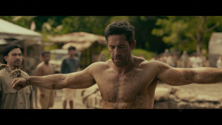 Prisoner of War features a DTS-HD Master Audio 5.1 track ostensibly in English, though there are smatterings of Japanese. The track gets a lot of its surround activity unsurprisingly from its action sequences. That is evident from the veritable get go as Wright takes on Ito's dojo students and pretty easily dispels of any threat, but a lot of the later camp material, whether fight-centric or otherwise, provides good engagement of the side and rear channels to deliver both ambient environmental other sound effects. Dialogue is rendered cleanly and clearly throughout. Optional English subtitles are available.
