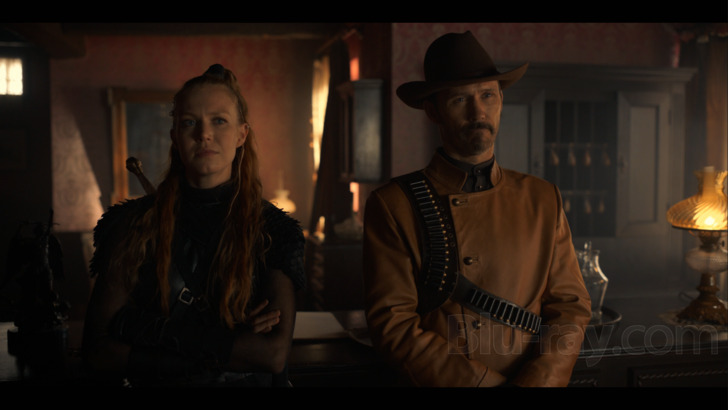 R.I.P.D. 2: Rise of the Damned has the distinct digital sheen and cable channel-production flatness of a low budget direct-to-video sequel, and Universal's 1080p/AVC-encoded video transfer doesn't offer anything to improve matters. Still, this is the film as shot and intended, so there's little to be disappointed about. Some crush and banding are present, noise and softness haunts CG elements in the movie's climax, and darker scenes are sometimes too murky for their own good. But overall the presentation shines. Colors are vivid and lifelike on the whole, black levels are deep and inky (minus a few underground shots that stop just shy of pure black), and contrast is vibrant and pretty consistent. Detail is also nice and crisp, with razor sharp edges and exacting fine textures.