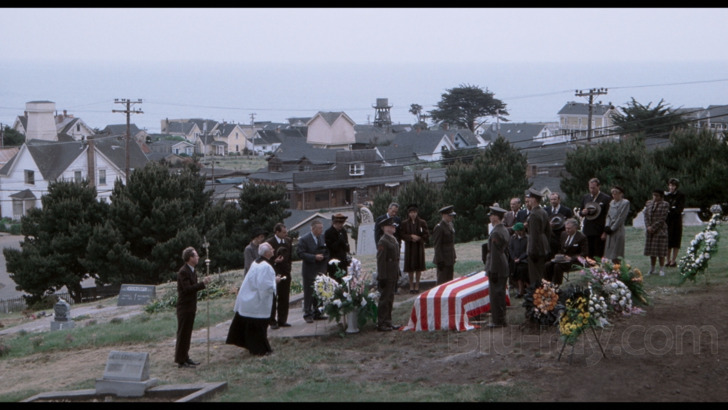 The AVC encoded image (1.85:1 aspect ratio) presentation is listed as "remastered from a new 4K scan of the original 35mm camera negative for this worldwide Blu-ray debut." Detail is generally acceptable during the viewing experience, examining varied ages and skin particulars on the cast, and period costuming remains somewhat textured. Town tours are decently dimensional, exploring coastal distances and businesses. Interiors retain depth, permitting examination of lively community spaces, such as a bowling alley. Colors are intact, preserving sharp primaries. Clothing choices favor deep grays and browns, and whites are crisp. Greenery is distinct. Skin tones are natural. Delineation is satisfactory, doing well with night events. Grain has mild chunkiness at times. Source is in good condition.