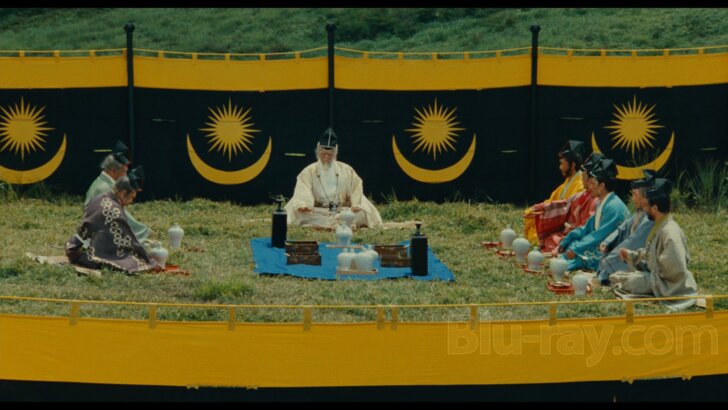 On the 4K Blu-ray disc and one of the Blu-ray discs, there is an archival program highlighting some of the challenges that emerged during the digitization and restoration of Ran. If you view the program, you will see several interesting comparisons between unrestored and restored footage, both with drastically different color schemes. The unrestored footage -- which is not ungraded footage extracted from the original camera negative, but unpolished footage extracted from an archival source -- retains most of the proper colors and color temperature of the film Akira Kurosawa shot. The restored footage is a digital reimagination of Kurosawa's film, finalized in 4K at the French lab Eclair, which, unfortunately, cinematographer Shoji Ueda endorsed. This gorgeous Limited Edition 4K Blu-ray/Blu-ray box set from StudioCanal presents Eclair's 4K restoration on 4K Blu-ray and Blu-ray. (Initially, the 4K restoration was released only on Blu-ray). It is undoubtedly the healthiest presentation of Ran, but it is not a faithful replica of the beautiful film Kurosawa shot forty years ago.