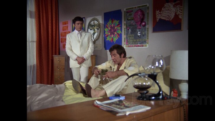 The overall quality of the audio is very good. However, in a few episodes, like in My Late Lamented Friend and Partner, small traces of aging anomalies can be noticed. The most obvious one is a slight raspiness in the dialog, which I never found distracting. I mentioned in our review of the first British release of Randall and Hopkirk [Deceased] that this is almost certainly an inherited limitation, and I still believe this to be the case. Dynamic intensity is very good for TV material from the early 1970s. The jazzy music score sounds terrific, too.