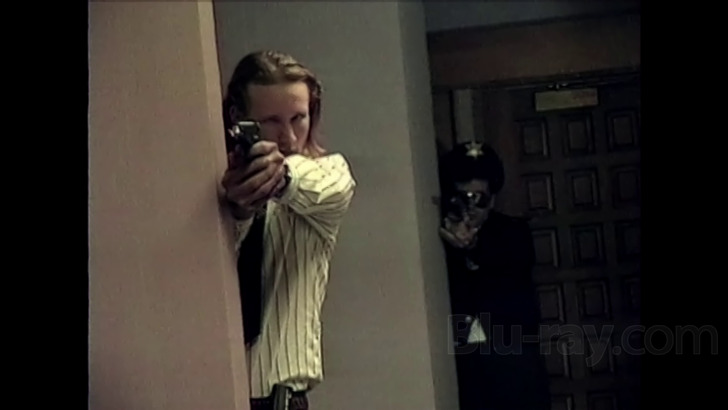 The 2.0 DTS-HD MA mix delivers clear dialogue exchanges, managing inherent equipment limitations. Scoring delivers a heavier synth sound, supporting suspense sequences. Sound effects are adequately defined, as the feature is filled with snappy gunfire.