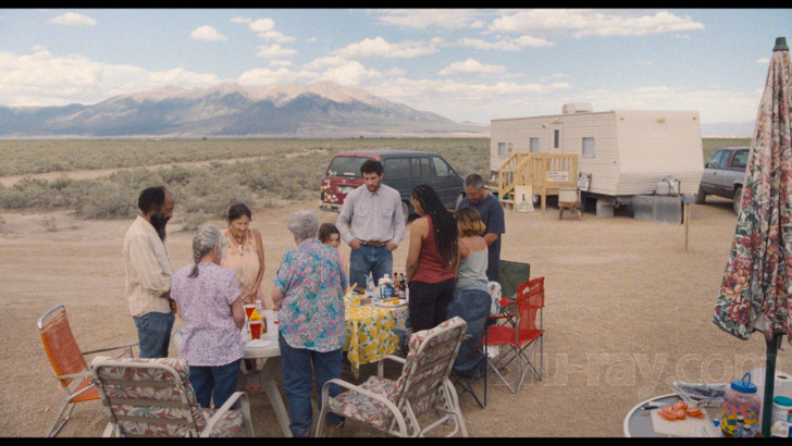 The 5.1 DTS-HD MA mix provides a welcome sense of location, with atmospherics handling the openness of the setting and community movement. Weather changes and fire emergencies are also active in the surrounds. Dialogue exchanges are clear, handling quieter emotional moments. Scoring is delicate, with distinct instrumentation supporting dramatic movements, and group gatherings provide defined acoustic guitar playing. While the feature is very low-key, focusing on characterization, low-end has some moments of weight, especially around disasters and weather events.