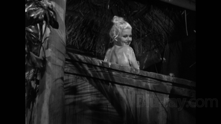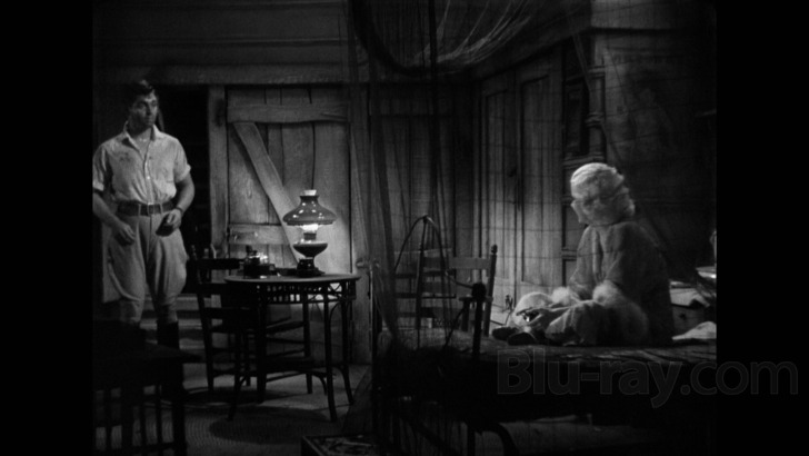 Since Red Dust's original nitrate camera negative is long gone (possibly lost before the tragic 1978 George Eastman House fire, according to a recent The Extras podcast), it was luckily part of MGM's nitrate-to-safety program that began at least a decade before. This best-available element was the source material for Warner Archive's new 1080p transfer, which was scanned in 4K and treated to a very careful round of manual cleanup; given the film's ample grain structure and multiple scenes with heavy rain, this was likely one of their more challenging restorations. As evidenced by these direct-from-disc screenshots, they've done a beautiful job indeed and once again delivered a purist-friendly picture that looks very true to its roots under the circumstances. Black levels occasionally pulse, noise competes with native grain levels, and unfixable damage can be seen on occasion, but this are all almost entirely forgivable; in face, as a whole it's well above expectations for a film quickly approaching the century mark. As usual, disc encoding is very good as the film gets almost an entire dual-layered disc to itself, tying everything together as neatly as possible.