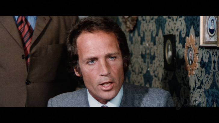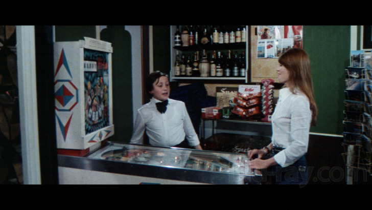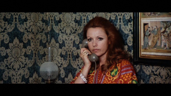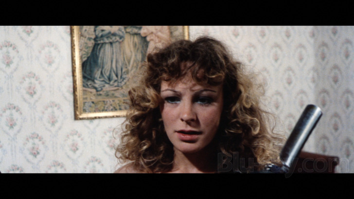 The AVC encoded image (2.35:1 aspect ratio) presentation is listed as "newly scanned and restored in 2K from a 35mm Italian copyright deposit print." Plenty of wear and tear is detected during the viewing experience, with scratches and points of damage found along the way. Detail reaches as far as possible, capturing a sense of skin particulars on the occasionally nude cast, and period costuming is decently textured as wilder outfits appear. Color is appreciable, delivering appealing primaries on fashion and decoration. The blackness of the murderer's appearance is distinct, and skin tones are natural. Delineation is satisfactory. Grain is capably resolved.