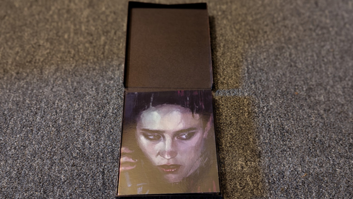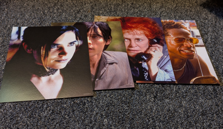 Supplements on the 4K disc are detailed in my review, and supplements on the 1080 disc are detailed in Marty's review of that release. This probably qualifies as the most distinctive packaging from this month's Lionsgate Limited releases. This is housed in what amounts to a box with a hinged lid that is designed to look like an old fashioned television. That lid has a cheeky lenticular cover that offers several (well, three, anyway) different images depending on how the viewing angle is adjusted. Opening the lid then reveals another hinged cover that is a removable DigiPack which opens laterally to reveal the two discs (4K and 1080) housed within an image of the television being pushed on a cart. Also included is a folded mini poster and several art cards. A digital copy is also enclosed.