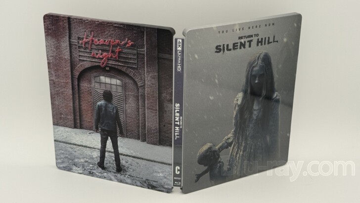 Based on the fan-favorite Konami video game series, 'Return to Silent Hill' arrives on 4K UHD disc in this amazon-Exclusive SteelBook courtesy of Cineverse. Directed by Christophe Gans ('Brotherhood of the Wolf'), who directed the first 'Silent Hill' film in 2006, this second sequel, based on the second game in the franchise, stars Jeremey Irvine ('War Horse') and Hannah Emily Anderson ('X-Men: Dark Phoenix') alongside a host of disturbing practical creature effects. A small assortment of light on-disc supplemental features are accompany the feature film. A Blu-ray disc, an exclusive O- card, and a lenticular art card are also included, but a Digital Code is not. For a discussion of this new SteelBook, please scroll down to the "Special Features and Extras" section.