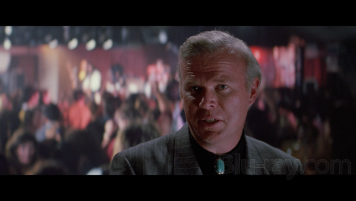Road House is presented in its original 2.39:1 aspect ratio with 5.1 and stereo audio. The film is presented in 4K resolution in HDR10 and Dolby Vision.I'll once again cut to the chase and recommend fans of the film with appropriate equipment to opt for Arrow's Road House 4K release, especially since the new Dolby Vision grade adds even more luster to an already almost improbably suffused palette in this great looking 1080 presentation. Probably unsurprisingly given the above verbiage, this looks very similar if not downright identical to Vinegar Syndrome's release from a few years ago, down to and including a 2.40:1 aspect ratio as well as what certainly looks to be (based on the admittedly unscientific method of screenshot comparisons) look alike color timings. Detail levels are excellent throughout, though there are occasional moments of slight blurriness at the very edges of the frame, something that may actually be a bit more subliminal here in 1080 than in Arrow's 4K version. Eagle eyed viewers will spot some extremely picayune signs of age related wear and tear during the rather long optically printed credits sequence, but there's nothing of any problematic note afterwards. Grain resolves naturally.