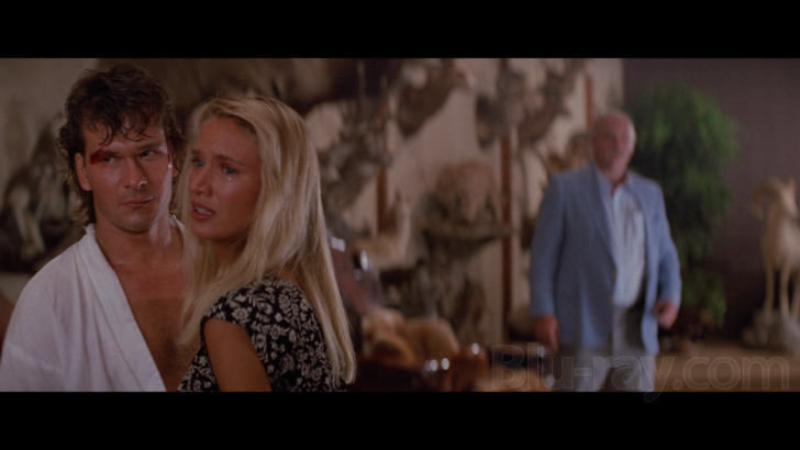 Road House features DTS-HD Master Audio 5.1 and DTS-HD Master Audio 2.0 audio options, both of which struck me as being virtually interchangeable with the similar options on the old Shout! Factory 1080 release I reviewed years ago. The 5.1 mix provides good, active use of the side and rear channels in the (many) fight sequences as well the fun if sometimes cacophonous musical performances by Jeff Healey and group (one of the film's funniest if most subtle jokes is how the band is kept in a cage, evidently to keep them from getting injured). Michael Kamen's score is a product of its era and will therefore perhaps not be fully appreciated by those who weren't around in the late eighties, but it's rendered here with quite a bit of force and again spreads quite comfortably in the surround channels. Dialogue (such as it is) is cleanly and clearly presented and is generally well prioritized, though a few really rowdy scenes at the Double Deuce tend to bury brief moments in the general melee. Optional English subtitles are available.
