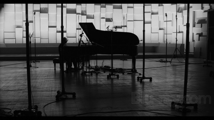 Ryuichi Sakamoto: Opus is presented on Blu-ray courtesy of The Criterion Collection's Janus Contemporaries imprint with an AVC encoded 1080p transfer in 1.90:1. Captured with Sony CineAlta cameras at source resolutions of up to 8K, and finished with a 4K DI (all data points courtesy of the IMDb), this is simply a stunning looking presentation from start to finish. Contrast is exceptional, and Kirstein's lighting is immaculate, offering a really sumptuous play of shadows across both Sakamoto and the piano. Even in less than fulsomely lit moments (of which there are several), fine detail is surprisingly intact, with little tufts of Sakamoto's head or even facial hair clearly visible against backlighting. Best of all, considering the variable lighting regimens, there are absolutely no signs of banding.