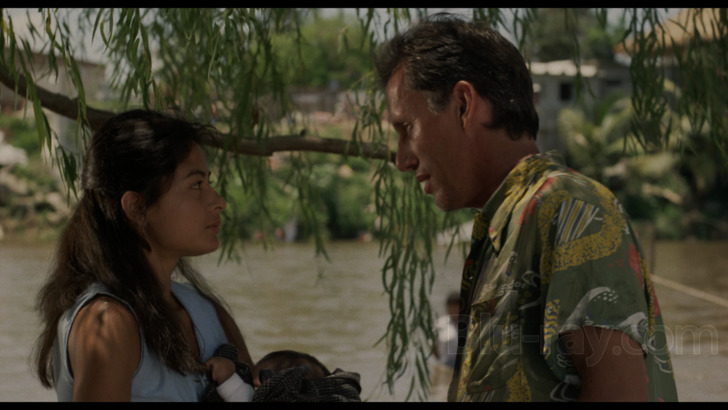 I viewed and sampled the 4K in both HDR10 and DV. Cinematographer Robert Richardson was perfectly suited to film this contemporary (and very relevant) war drama since he worked in documentary just prior to Salvador. The malaise wasn't a pretty picture to photograph as there's a surfeit of grime, sweat, and blood throughout. But the vegetation seen in the Mexican countryside was quite beautiful for him to capture (see #5). Primaries are nicely saturated without appearing overly saturated. Grain comes through clearly along the San Francisco skyline and in both interiors and exteriors for the scenes set in El Salvador. Highlights are attractively rendered without getting overblown. For instance, the sun shines rather exquisitely in the top background in the aftermath of a late-night scene in the film's second half. Dirt and debris pop up only a few times. My video score for the UHD is 4.75/5.00. The 4K disc sports a mean video bitrate of 80.7 Mbps while the full disc carries an overall bitrate of 93.2 Mbps.