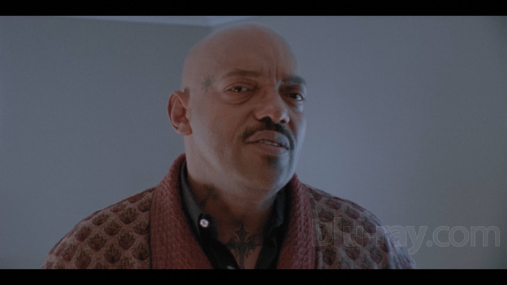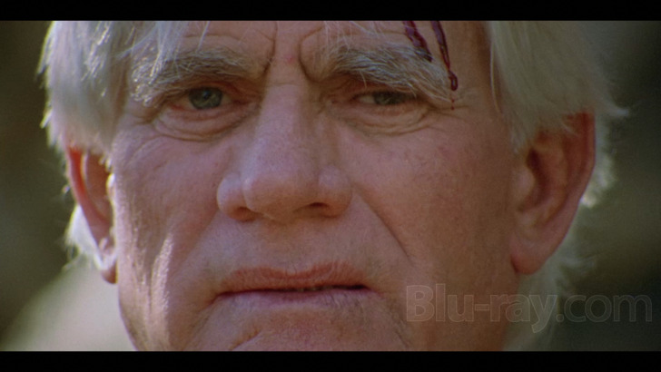 The visual presentation (2.00:1 aspect ratio) for "Samurai Priest: Vampire Hunter" doesn't list an exact source, but the disc's extras explore an effort to restore a movie that was "shot on super 16mm film," but previously available as "Live Evil" through an SD source. The film-like appearance of the picture is present, but grain does look a little noisy at times, and periodically blocky. Compression issues are present as well, finding banding creeping into view. Detail reaches as far as possible, providing a general understanding of character appearances and gory events, which retain some texture. Exteriors maintain open world expanse. Interiors deliver acceptable decoration and depth. Color loses a bit of consistency during the viewing experience, but mostly remains intact, exploring brighter hues on costuming and cars, and blood red remains vivid. Moodier hues are acceptable, offering decent delineation. Skin tones are natural. Source has some wear and tear, including a few pronounces scratches.