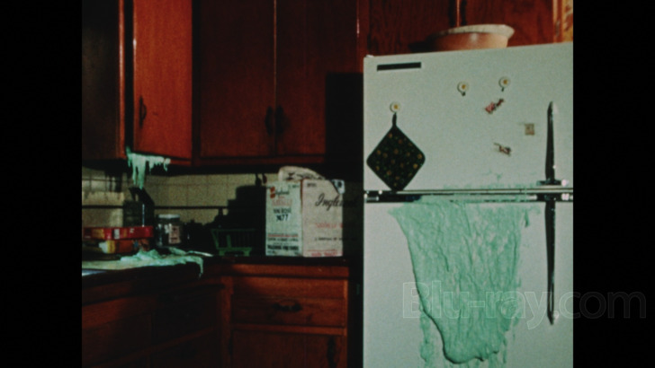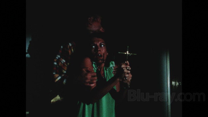 The AVC encoded image (1.33:1 aspect ratio) presentation opens with an information card explaining that "Satan War" was "restored from the only surviving 16mm answer print," and that "the restoration contains a brief jump cut, as well as an abrupt ending – both of which are present in the original elements." The viewing experience is pushed as far as possible here, with delineation struggling throughout, having a bit of trouble preserving frame information in limited lighting. Shadowy events slide into solidification at times, but well-illumined cinematography is acceptable, allowing for a mild appreciation of the living space and the characters, who retain a softer sense of detail. Color is passable, finding skin tones running a bit too red, but evil events, such as mint green gunk, appear to register as intended. Costuming and interior decoration add some varied hues, and a golden crucifix is defined. Source is in decent shape, with a few hairs and points of damage.