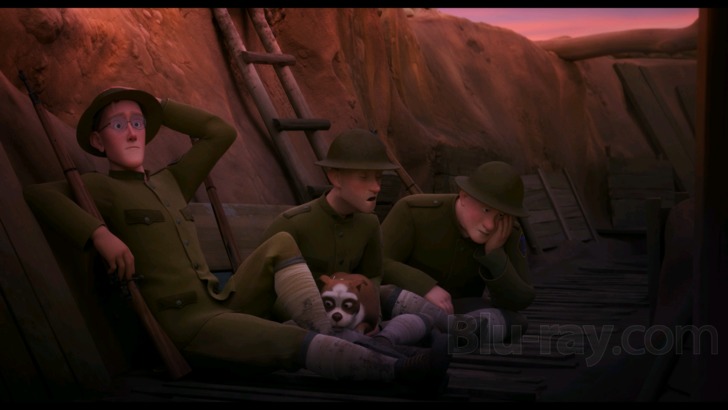 Since I'm more than familiar Sgt. Stubby's appearance on DVD, it was nice to finally see a clean 1080p transfer that offers mild to strong improvements across the board. Although its simple, almost painterly visual style doesn't rely on razor-sharp details or ultra-punchy colors, the increased density and color saturation go a long way towards showcasing the film's effective (and occasionally somber) atmosphere. So does the format's much better compression, which yields far fewer artifacts -- only a few splotches of patchy banding during the darkest moments, which look worse on these screenshots than they do in motion. These black levels rarely run deep by design, but shadow detail never falters and there are no traces of crush. Overall, this is a fine-looking film that impresses in all the right areas.