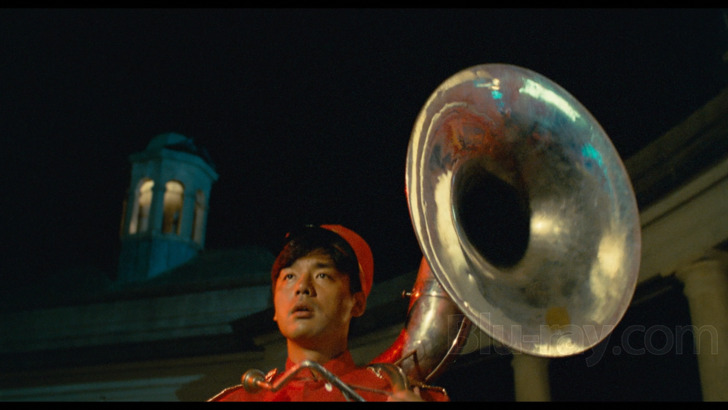 If the color timing of this release may strike some as potentially revisionist, there may be absolutely no argument about the revisions to the soundtrack, as this features a newly produced 2024 dub that the back cover describes as "Mandarin Shanghaiese", but which our specs can only handle by listing both Mandarin and Cantonese, though there is but one track on this disc, in DTS-HD Master Audio 2.0. The musical elements, which are many, are typically vibrant and decently full bodied, but a lot of the track struck me as just slightly boxy sounding. Dialogue (whatever language it is) is presented cleanly and clearly . Optional English subtitles are available.
