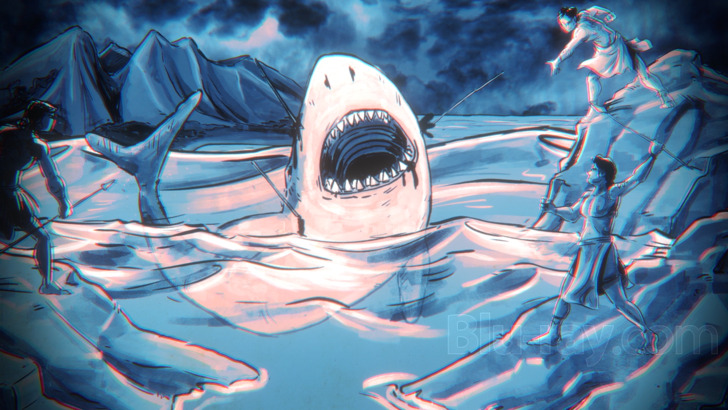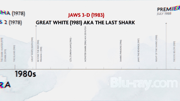 The 5.1 DTS-HD MA mix offers a simple listening event for "Sharksploitation," leading with interview footage, which maintains crisp voices throughout. Scoring selections support with decent instrumentation, and musical moods occasionally reach into the surrounds in a basic way. Low-end isn't challenged, but electro beats offer a little weight.
