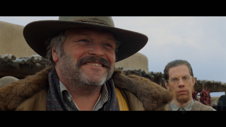 I'd be the first to tell anyone to never, ever, ever rely on good screenshots when evaluating a 4K or Blu-ray video presentation. But if you'll allow for some shameless hypocrisy, even for just a moment... my God, take a minute and peruse the screengrabs attached to this review. Go on. I'll wait. Enlarge any one of those images and you're not only in for a treat, you're getting just a taste of what's in store when it comes to Sony's 4K 2160p outstanding restoration and video transfer. Created using a meticulous scan of the original 35mm negative, the studio's wholly faithful yet stunningly renewed presentation is quite easily one of the best catalog video presentations of the year, if not the entirety of the 4K format. Leaps and bounds beyond the already impressive 2009 Blu-ray, the image is awash with rich, lovely, perfectly saturated colors and lifelike fleshtones. You can thank the Dolby Vision enhancements if you'd like, but really this is color timing (or perhaps retiming) at its finest. Primaries pop. The bright blues of the desert skies pierce the picture. Reds erupt and earthtones deliver. Black levels are deep and inky, yet delineation is revealing in every instance and exactly as forgiving or oppressive as it was originally meant to be. Contrast is flawless too, and detail is simply top tier. I can hardly believe I just watched a film from 1985, much less am sitting here rewatching to remind myself just how magnificent it all looks. Textures are razor sharp, filmic grain is present, consistent and unobtrusive, edges are crisp without any signs of ringing, and every bit of stubble and palpable, nearly touchable swath of fabric is as striking as those screenshots suggest. Add to that a complete lack of banding, macroblocking, digital noise, print blemish or any other issue and you have, hands down, a video transfer that should earn Silverado a place on any Best of 2025 list come year's end. I can't recommend this 4K beaut any more emphatically.