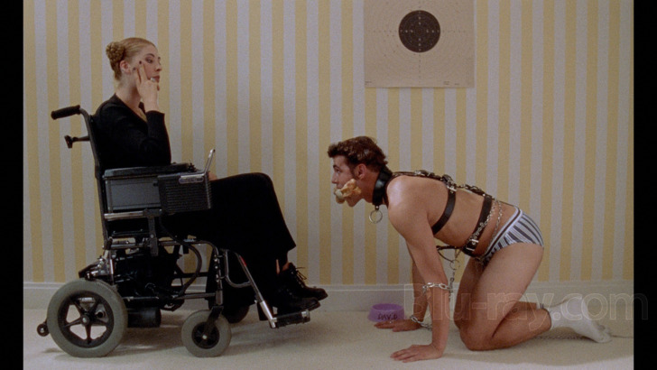 The AVC encoded image (1.85:1 aspect ratio) presentation delivers a fresh viewing experience for "Sitcom." Detail is generally quite good, exploring textured skin particulars and costuming, while fine fur on the rat is appreciable. Interiors are open for inspection, touring the household and its distinct decorative choices. Color is sharp, with a crisp sense of primaries, especially on artful additions and style choices. Skin tones are natural. Delineation is satisfactory. Grain is adequately resolved. Source is in strong condition, with some very mild scratches and debris encountered.