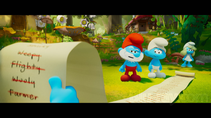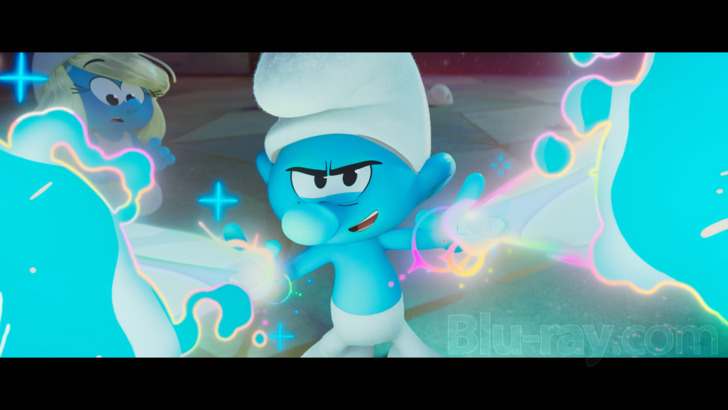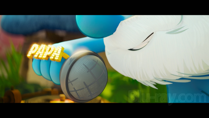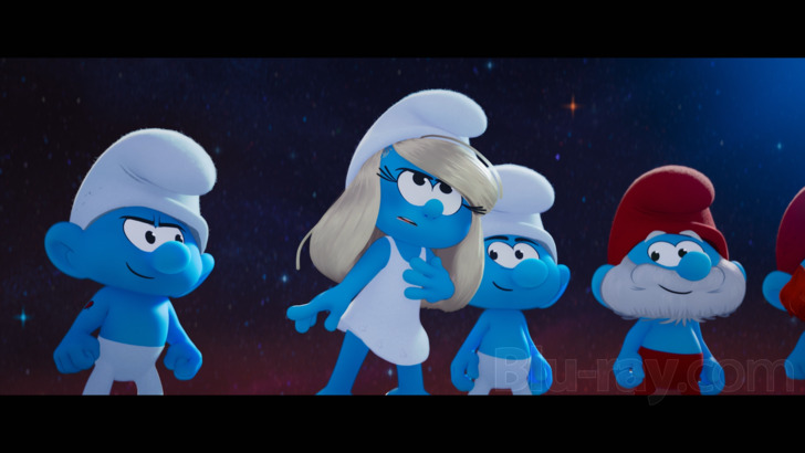 Smurfs la-la-la-la-la-las onto Blu-ray with a Dolby Atmos soundtrack. The presentation rates as "excellent" for all components: fidelity, volume, clarity, and spacing. The track is wonderfully balanced, bringing every element into its proper place and offering some fun sound design cues (motorcycles traversing the streets of Paris, other throaty engine revs, and the like) as well as plenty of perfectly placed, precise, and potent sound elements that bring action details and environmental cues to life with equal definition and attention to fine detail. Music is rich and satisfying, whether score or Pop-y beats; the front channels handle the bulk, but there is no shortage of finely balanced surround content. Overheads are not used to the extreme for discrete elements, but the support is welcome and only adds to the total atmospheric experience. Dialogue is clear and centered for the duration.
