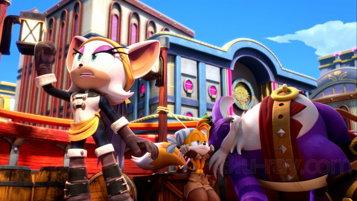 Sonic's DTS-HD Master Audio 5.1 surround track is a tad front-heavy, particularly when the animals are doing little more than standing around talking. But there's enough of a soundscape on tap to keep every speaker busy from episode to episode. LFE output isn't nuanced but it is aggressive, with plenty of weight lent to Sonic's more active misadventures. Environmental ambience is present too, though again less-than-subtle, while action scenes crank up the, well, action of the rear channels, sending shrapnel and lasers every which way with directional precision. Voices are clean and clear too, without anything that might undermine their place at the front-center of the soundfield.