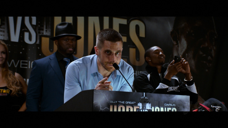 Marty was similarly enthusiastic about the old 1080 disc's DTS-HD Master Audio 5.1 track, but Lionsgate has once again gone back to the drawing board and provided a really impressively immersive Dolby Atmos track that makes the most of some of the arena settings of fights in particular. The surround activity in the big set pieces of the film offers at times cascading waves of crowd noises, interspersed with very smartly directional sound effects as fists meet flesh. Even some of the quieter moments, like some of the moving material between Billy and his daughter, have nice placement of ambient environmental effects in the side and rear channels. Eminem's contributions as well as James Horner's underscoring also are nicely spacious. Dialogue is rendered cleanly and clearly throughout. Optional English and Spanish subtitles are available.