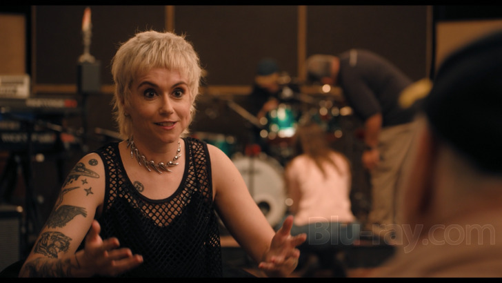 The 5.1 DTS-HD MA mix isn't dealing with a particularly complicated feature, which favors extended dialogue exchanges as the cast riffs away in various interview scenarios and personal time. Voices maintain clarity, keeping comedy intelligible, also preserving group interactions and softer discussions and confessions. Music plays an important role in the movie, and instrumentation during performances is precise, offering a feel for band performances with acoustic and electric sounds. The mix offers some surround activity with musical offerings, but this is primarily frontal listening event, providing some heft on concert action. Low-end supplies a satisfactory beat with percussive instruments, and perks up with stage mishaps.