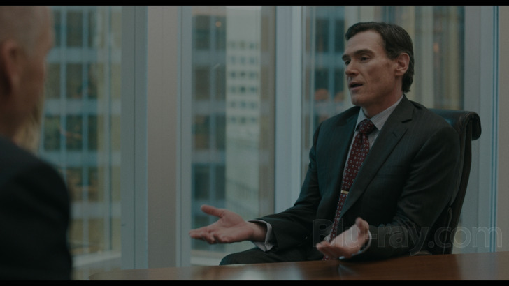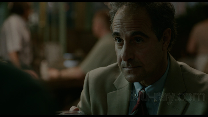 Walter Robinson's (Michael Keaton) golf outing with Jim Sullivan (Jamey Sheridan) as seen in capture #s 17 and 6. The 4K brings out depth cues better than the regular Blu-ray. It does this even in tighter and more cramped shots such as the one with the trio of Globe journalists in Screenshot #34. Depth also impresses during a wide shot showing Banker's Lamps situated along the tables of a library where Sacha Pfeiffer (Rachel McAdams) does her research.
