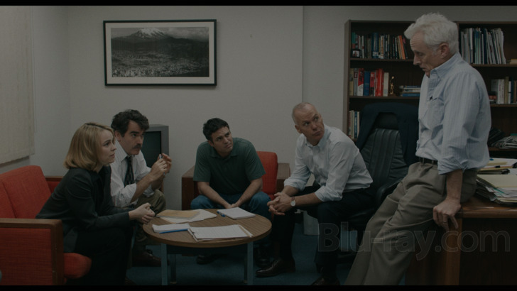 Shout has supplied a DTS-HD Master Audio 5.1 Surround mix (3244 kbps, 24-bit) and a 2.0 Stereo downmix (1990 kbps, 24-bit). This seems like the same 5.1 track that's on the Universal BD from nine years ago. Spotlight is very dialogue heavy so expect a front-oriented track. Dialogue is intelligible, although it took me a while to warm and get used to Keaton's Boston accent. The surrounds occasionally deliver the town's traffic noise, chirping birds, and other ambient sounds.
