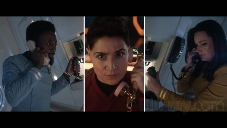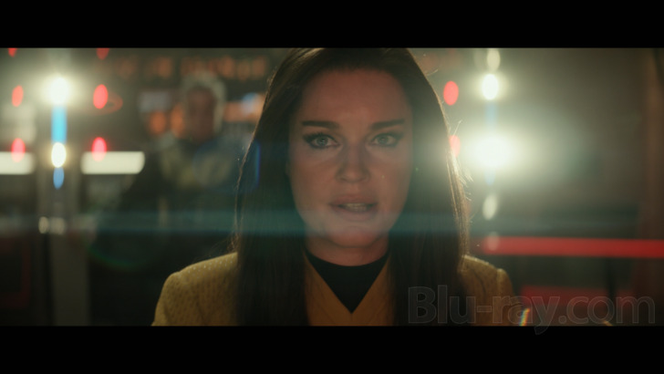 There's nothing strange about Strange New Worlds on Blu-ray. Paramount has delivered a knockout type of presentation for this latest installment of the Star Trek franchise on 1080p disc. The picture is stunning through and through, delivering the sort of tight and complex textures that are reserved for the best of the best the format has to offer. Certainly, one of the reasons why the image looks so great is the exquisite production design and high end digital captures, but one must also acknowledge that Paramount has not crammed the series on the discs; the ten episodes are spread over four discs, giving ample breathing room which results in no immediately obvious artifacts to get in the way of high definition bliss. Indeed, every starship surface, every uniform texture, and all of the skin details are presented in dazzling complexity and clarity. There is not a shot that doesn't look as rich and exacting as the 1080p format can provide. Likewise, the color output is terrific. Even lacking the UHD's Dolby Vision grading, the SDR colors deliver an explosion of richness and fidelity that pushes this format to its outer limits. White balance is particularly noteworthy, with whites looking super crisp and efficient, especially in sickbay and the medical uniforms seen throughout the season. Obviously, the other uniform colors are the standouts, but every color on bridge consoles, alien terrain, and other elements look near perfect. Black level depth is excellent, too. There's nothing at all to warrant a score of less than "perfect" with this presentation.