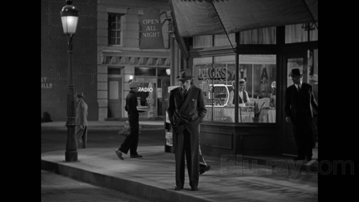 Shot by the prolific cinematographer Nicholas Musuraca (Cat People, Out of the Past), Stranger on the Third Floor's proto-noir visuals look outstanding on Warner Archive's exclusive 1080p transfer. Sourced from a new 4K scan of the original nitrate camera negative, it carries all of the highlights from their previous work on films from this era including strong image details and textures, critically important handling of deep blacks and shadow detail, and of course a film-like and unprocessed appearance that features plenty of organic film grain. As these direct-from-disc screenshots imply, it's simply more top-tier work from the boutique label and earns an easy five stars, both for the previously-mentioned strengths as well as solid disc encoding that runs at a smooth and supportive bit rate from start to finish.