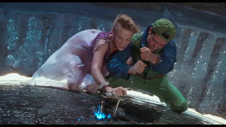 Edited by Mark Goldblatt (Terminator 2: Judgment Day, True Lies), Super Mario Bros. is a well-edited and well-paced film. Super Mario Bros. could have felt overlong or overblown but instead it has an impressive and well-paced cut that flows terrifically well throughout the feature-film. The editing certainly serves the narrative and the performers well.