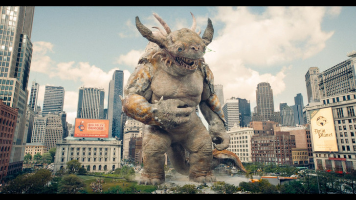 Back in Metropolis, we're reintroduced to employees at The Daily Planet including bickering Clark Kent and Lois Lane (Rachel Brosnahan), apparent ladies' man Jimmy Olsen (Skyler Gisondo), and others, but after work at Lois' apartment, it's revealed that she and Clark have long since been an item and no secret-identity revelations lie ahead. Instead, we just get boring old domestic turbulence during her impromptu first interview with Superman after dinner. Across town, Lex makes another big move: his lackeys unleash a baby kaiju in downtown Metropolis to distract Superman from his trip to the Fortress, where Lex and company decimate the weak security, dog-nap Krypto, and steal a recorded video excerpt of Kal-El's biological parents, which may or may not have a second part that has yet to be seen. The next day, Lex's kaiju has grown to mammoth proportions so Superman intervenes, but he's aided by a metahuman trio known as "The Justice Gang" that includes Green Lantern (Nathan Fillion, playing himself), Hawkgirl (Isabela Merced, snarking it up), and computer wiz Mr. Terrific (Edi Gathegi, who comes off like Kirk Lazarus in Tropic Thunder).