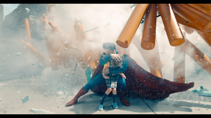 As usual, please see my recent review of the 4K edition for a general overview of Superman's visual aesthetic, which has been repurposed here as a downscaled but great-looking 1080p/SDR transfer. Due to film's HDR layer not being as drastic as some films, this Blu-ray's colors don't differ quite as much when compared to the UHD; there are exceptions where intensity and saturation are concerned, not to mention colors adjacent to darker values, but for the most part it's certainly not a night-and-day difference. Where the Blu-ray can't quite measure up are in the areas of textures, detail, contrast, and compression, though as seen in these direct-from-disc screenshots, it truly holds its own within format boundaries... especially considering that this dual-layered disc contains over four hours of HD content. If you watch the UHD first or saw Superman theatrically, you might easily notice the handful of "sacrifices" here. But on its own terms, this is a very good-looking disc that only suffers from occasional banding and macro blocking during visually complex scenes (the river of anti-protons, for example) but, on smaller displays, some these sporadic issues will be either inconsequential or practically invisible. In short, it's a very good effort and a solid runner-up for sure.