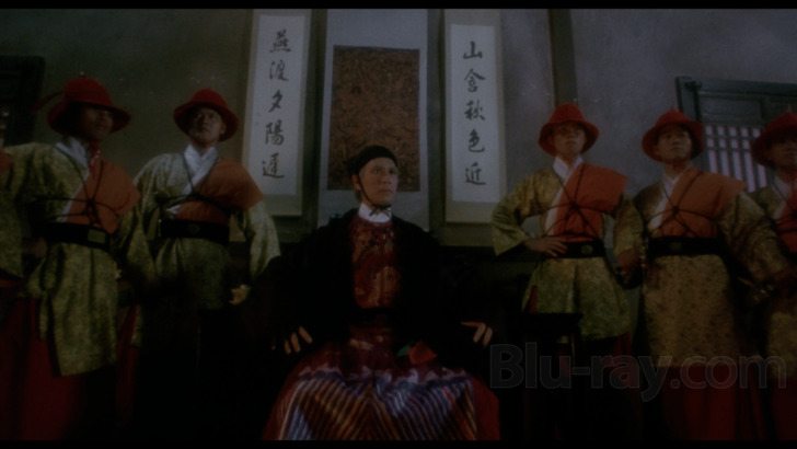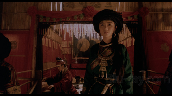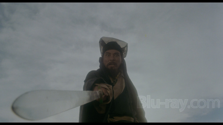 Shout has supplied a DTS-HD Master Audio 2.0 Mono mix (1566 kbps, 16-bit) in the original Cantonese and an optional English dub, also encoded as DTS-HD MA Dual Mono (1562 kbps, 16-bit). I watched Swordsman twice with the native Cantonese. There's a tiny bit of a blare that is heard during the first couple scenes. If you have a calibrated receiver, you'll be able to hear the sound track plenty well at regular volume. No issues occur with dialogue and delivery. Sharp swooshing noises are accented during sword duels. The score by James Wong and Romeo Diaz is a mixed bag. While it generally underscores the drama reasonably well, there are some horribly dated synth drones that sound completely out of place. Diegetic folk songs are an occasional presence. Wu Ma sings the ballad "Xiaoao Jianghu" ("Laughing Proudly in the Jianghu"). There's also the recurring song "Hero of Heroes."