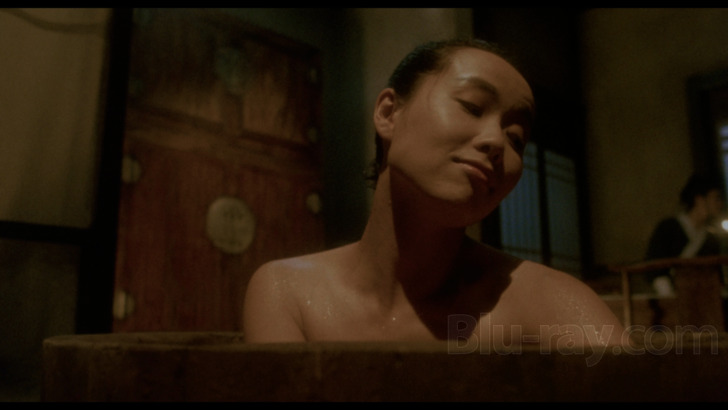 The 4K Ultra HD Blu-ray and standard Blu-ray are each taken from a 4K scan of the original camera negative. The image appears in its native exhibition ratio of 1.85:1. I viewed parts of Swordsman in both HDR10 and Dolby Vision. Lam and Pau's photography employs special filtration for nighttime exteriors and some interiors as well. For instance, the former features a midnight-blue tint that SD formats would have trouble rendering but the 4K and regular Blu-ray handle it quite well. The crew has also added mist and smoke (see Screenshot #s 12-13 and 35-36). The trees and woody grass in the bamboo forest look exquisite (see capture #14). Lam and Pau have suffused a lot of the interiors with an amber-like tint (see frame grab #s 16-17 and 39-40). The Dolby Vision brought out increased color depth. For example, tree leaves in the distant background (shot #30). In addition, the moon almost made a pop-out effect (#15). There's solidity to the reds on the period costumes.
