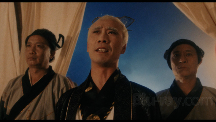Shout! has supplied a Cantonese DTS-HD Master Audio Dual Mono mix (1593 kbps, 24-bit) and an English-dubbed DTS-HD Master Audio 5.1 Surround track (2751 kbps, 24-bit). I listened to the original-language mix twice. It is a bit loud while played at regular volume level on my calibrated receiver so I would recommend turning it down by about five decibels. Jeff heard distortion and muffled, boxy sounds on Vivendi's two Cantonese sound tracks (the 2.0 and 5.1). Fortunately, the lossless monaural mix doesn't present any bad distortion or compressed sonics in its presentation. Dialogue is consistently audible. Sound effects during action sequences are crisp and accented well when characters and their weapons collide with one another. I didn't sample the English dub but it may be the same one that's on the Vivendi and Ronin Flix discs.