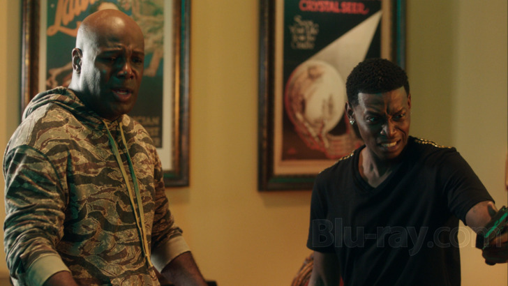 Razor sharp but as digital as digital gets, Universal's terrific 1080p/AVC-encoded video presentation doesn't feature a speck of grain or an ounce of cinematic flair, relying instead on cable TV-like production values with a high gloss sheen. Detail is excellent, and the first thing you'll notice right out of the gate. Edge definition will slice a hair in two, and you'll see every fiber of the hair as it does. Textures are crisp and refined, delineation is revealing, and contrast keeps it all popping off the screen with vivid, 21st century digitally filmed clarity. Colors are beautiful too, with plenty of primary power and vibrancy to make even the gnarliest of visuals that much more striking. Blood splatters across the screen in striking swaths of bright, gummy reds, black levels are deep and inky, and fleshtones are suitably warm and sensual. There is a bit of digital noise when lighting lowers, and a touch of banding here and there if you keep your eyes peeled. But none of it amounts to anything significant. Tales from the Hood 2 looks great.