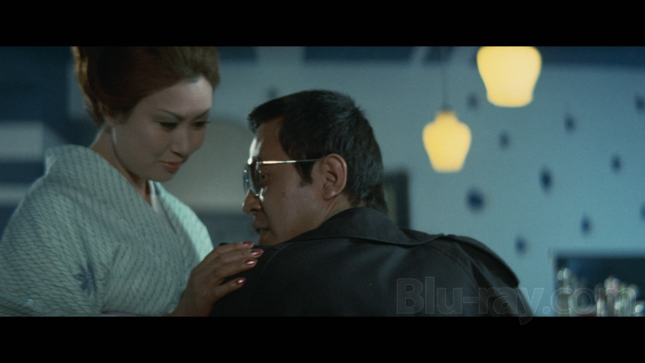 The production designs by Yoshimitsu Amamori (Female Yakuza Tale: Inquisition and Torture, The Valiant Red Peony) are impressive and add to the visual sensibilities of the filmmaking. The film certainly has a distinct Grindhouse style aesthetic while feeling experimental at the same time. A well-done effort by Amamori.