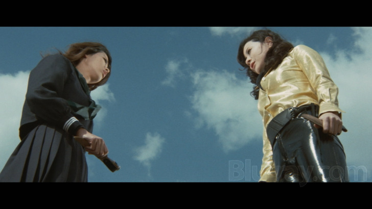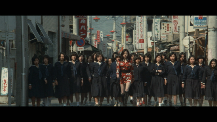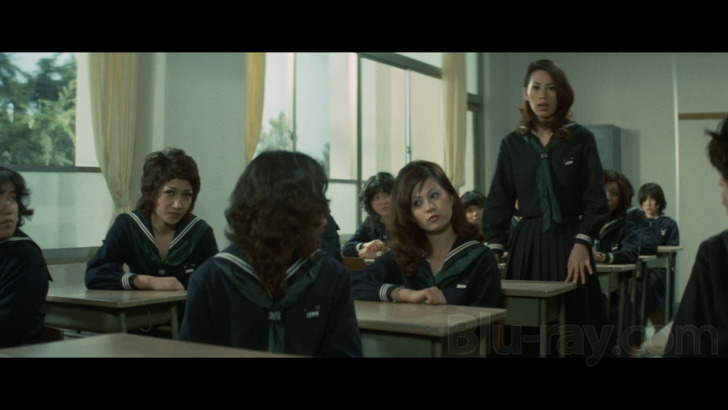 Released on Blu-ray by Discotek Media, Terrifying Girls' High School: Lynch Law Classroom is presented in 1080p MPEG-4 AVC encoded high-definition in the original theatrical aspect ratio of 2.35:1 widescreen. The high-definition transfer looks excellent overall. There are some occasional specks and minor print wear and damage but the transfer looks crisp and clear for the most part. This is a pleasing and cinematic looking transfer of the film. A well done encode by Discotek Media.
