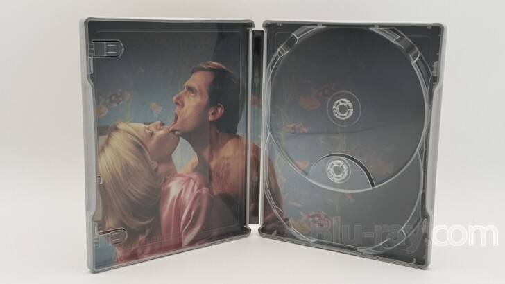 While perhaps not the most creative or evocative SteelBook design I've seen this year, and though the front and back cover don't really capture the heart or nature of the film, it does highlight the essential members of the cast. The interior image, that of Carell's Andy looking uncomfortable and being dominated by Elizabeth Banks' lusty Beth is truer to the film in every way, and could well have served as a more exciting cover. Still, SteelBook collectors will likely want to secure a copy for the right price, and fans of the film will want to add it to their libraries due to the improvements found on the 4K disc and the newly filmed panel discussion as well. The 40-Year-Old Virgin 4K 20th Anniversary Limited Edition SteelBook comes highly recommended.