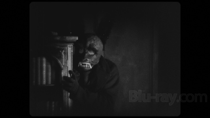 The Bat is presented on Blu-ray courtesy of Undercrank Productions with an AVC encoded 1080p transfer in 1.32:1. As someone who was born and raised in Utah and who was once given a joke holiday gift of a book called Utah: Gateway to Idaho, I have to kind of love the fact that a prefatory text card thanks Boise State University and whom I'm assuming was an individual Idahoan who provided the 35mm nitrate print that served as the source element for this transfer. This is by and large a rather appealing restoration, though those used to the kinds of age related wear and tear frequently seen in these older, often uncurated, elements may be better prepared for some of the issues on display. These range from relatively minor, including recurrent scratching which is probably more than discernable in some of the screenshots I've uploaded to accompany this review, but also some pretty serious emulsion damage that starts cropping up around the last half hour or so. Otherwise, though, things are in rather good shape, with nice detail levels on things like costumes or that horrifying bat head worn by the film's nemesis. Contrast is also generally solid, helping to amplify the shadowy cinematography.
