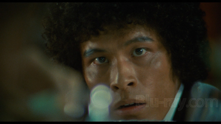 The Beast to Die was transferred in 4K by the kadokawa Corporation and supplied to Radiance Films and a high definition digital file.While at times some of these "pre-delivered" masters that Radiance and Arrow can offer at times have not completely wowed me, but in this case the presentation has an appropriately gritty texture offering an organically resolved grain structure, as well as a generally very nicely suffused palette. I did find a few scenes to be slightly skewed toward blues, something that may be subliminally reinforced by the production design, but something that be especially noticeable in some of the neo-noir moments in particular, with their tendency to feature cool blue or dark tones anyway. That said, as can be gleaned in some of the screenshots I've uploaded to accompany this review, things look natural when lit that way, and almost Bava-esque when more florid choices are made (see screenshot 5). Fine detail is often quite expressive, though it can ebb in some of those aforementioned dimly lit moments.
