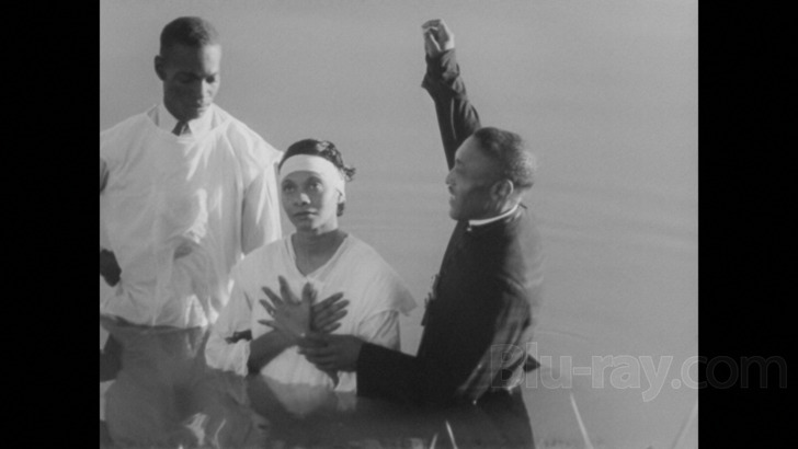 The Blood of Jesus features DTS-HD Master Audio 2.0 Mono. The front cover lists "The Heavenly Choir" as among the cast members, while the actual cast list mentions an actual minister and what one presumes is his congregational choir, who do perform a number of great spirituals on the soundtrack. While it's obvious that at least some scenes featuring the choir are actually post looped (the singers' lip movements are nowhere near what's being sung), a lot of the singing seems to have been captured "live". While fidelity is certainly not at contemporary standards, there is surprisingly little actual damage on the track. Yes, things are boxy and somewhat hollow sounding, but on the whole there's nothing overly problematic. Dialogue is rendered cleanly and clearly. Optional English subtitles (littered with sometimes hilarious quasi-mondegreens or at least misspellings) are available.
