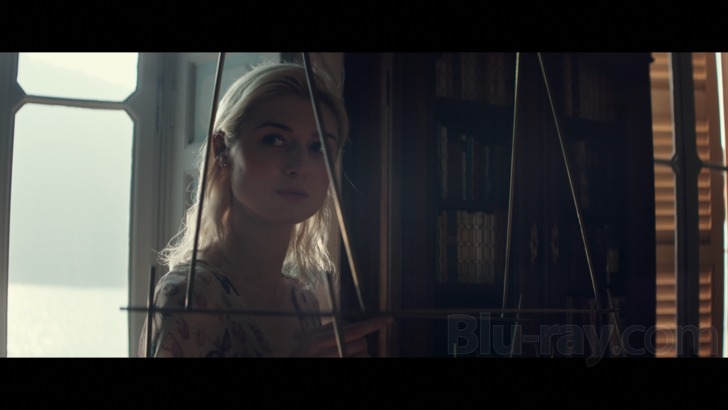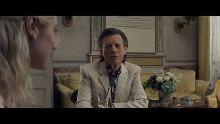 There's little of note in The Burnt Orange Heresy's DTS-HD Master Audio 5.1 lossless soundtrack. Clarity is good to the limited elements, which primarily include dialogue which is always well prioritized and center positioned. Mild ambient effects around the Cassidy estate exteriors are pleasing enough, including light winds and chirping birds. Music stretches the sides well enough and delivers suitably detailed and authentic notes.