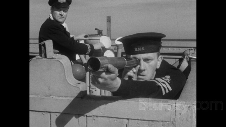 It is true that some of these visuals can be even more impressive. Delineation and depth can be a little better, plus some additional cosmetic work could be done to remove remaining tiny surface imperfections. However, this master is not plagued by problematic digital corrections, and its overall health is very good. Also, it has strong density levels, which means that even on a very large screen the visuals it produces still have a fine organic appearance. Obviously, the archival footage that is incorporated into the film is instantly recognizable because it looks quite rough. The grayscale is good, though some small rebalancing adjustments can be made to strengthen the blacks and grays. If sometime in the future the film is meticulously restored in 4K, I am convinced that this is an area that will be addressed, and after that the dynamic range of the visuals will be even more convincing. Image stability is very good. All in all, I think that The Cruel Sea still looks good on Blu-ray and is very much worth rediscovering by younger collectors. (Note: This is a Region-A "locked" Blu-ray release. Therefore, you must have a native Region-A or Region-Free player in order to access its content).