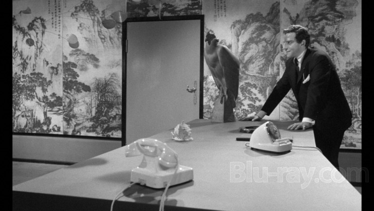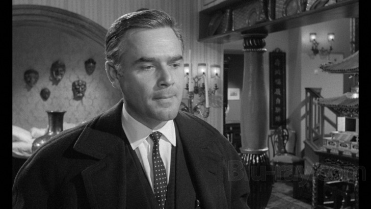 The Curse of the Yellow Snake is presented on Blu-ray courtesy of Eureka! Entertainment with an AVC encoded 1080p transfer in 1.66:1. All of the films in this set (with the exception of The Phantom of Soho, which was sourced from a standard definition master) have the same generally great appearance, with a good accounting of gray scale and some decent if not overwhelmingly deep blacks. Detail levels can be quite pleasing even in some midrange framings, where some of the midcentury sets and costumes are rendered with precision. Small signs of age related wear and tear can be spotted. Grain resolves without any issues.